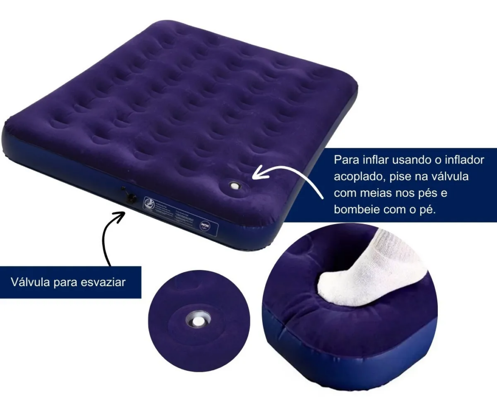 Colchão Inflável Casal Com Inflador Acoplado Camping Mor